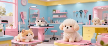 软3D风格的卡通少女与萌犬街头购物,梦幻色彩搭配温馨氛围,充满可爱感与潮流趣味,展现都市生活甜蜜日常。
