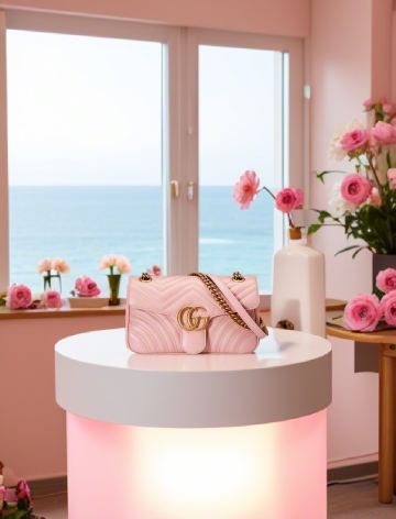一组四个不同设计的女士手提包,每个包采用不同纯色背景(如米白、浅灰、淡粉、天蓝),保持原图的3D渲染风格,菱格纹绗缝面料质感,深棕色皮革手提带,可拆卸式圆形零钱包挂饰及印有品牌标识的织带装饰,整体光影柔和,高光和阴影过渡自然,构图居中对称,四个包呈2x2网格规整排布,每个包的颜色、菱格纹大小或细节装饰略有差异,均为简约时尚的日常通勤款式,画面干净无多余元素,具有清晰的产品展示效果。
