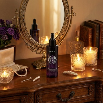 中式古典风格,轻拟物风设计,柔和光影营造浪漫唯美感,国潮风精华液展现简约之美。