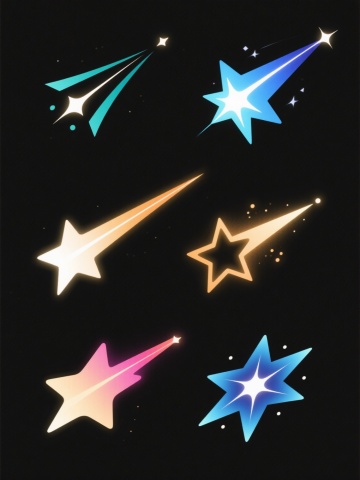 纯黑背景,六个具有高度统一视觉风格的数字艺术光效元素集合,每个元素均保留核心的圆形光晕结构、明亮的中心光点、向外辐射的锐利星芒以及彩色(蓝、红、绿为主)的边缘色散效果,整体呈现出强烈的科技感与未来感,光影对比鲜明,细节丰富。六个光效元素造型完全不同:第一个是标准正圆形光晕配十字星芒;第二个是略微椭圆的光晕配放射状不规则星芒;第三个是中心光点偏移的不对称光晕配多束长短不一的星芒;第四个是光晕边缘带有细微锯齿纹理的圆形配米字形星芒;第五个是中心光点呈六边形的光晕配向外渐细的星芒;第六个是光晕内部带有同心圆纹理的圆形配十字交叉但末端分叉的星芒。所有元素采用相同的蓝紫色调为主、点缀红绿色散的配色方案,以规整的2x3网格形式排布在纯黑背景上,元素间间距均匀,整体构图平衡且具有强烈的系列感和设计感。