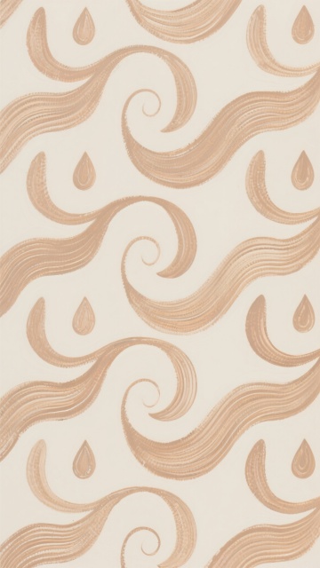 一幅具有浓厚油画质感的简约花纹图案,以纯色背景为底,画面主体由流畅连续的曲线波浪线条构成,这些线条呈现出类似水滴和漩涡的有机形态,以重复交错的方式形成整体统一的无缝图案。油画特有的厚重笔触和颜料堆叠感体现在线条的边缘和内部纹理上,线条内部有细腻的平行排线纹理,模拟手绘的温暖质感。整体色调统一和谐,曲线线条的颜色与纯色背景形成柔和对比,营造出优雅、宁静且富有艺术气息的视觉效果,兼具装饰性与简约设计感。