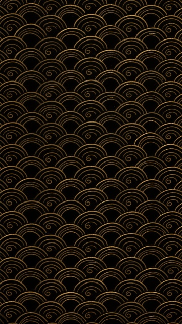 深蓝色底纹上以金色勾勒的传统云纹与波浪纹连续图案,线条流畅细腻,呈现出对称重复的几何美感,云纹形态饱满卷曲,波浪线条柔和起伏,整体构图均衡有序,具有浓厚的东方传统装饰风格,金色纹样在深色背景上形成鲜明对比,展现出典雅庄重的视觉效果。