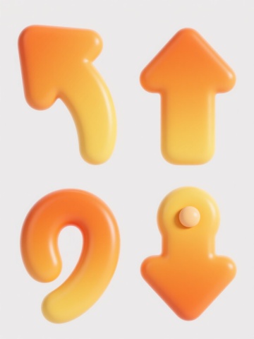一组6个同系列3D立体风格上升箭头设计素材集合,每个箭头保持流畅曲线造型与光滑渐变金属质感,均采用纯色背景突出主体,箭头整体呈向上攀升的动态姿态,光影过渡自然柔和,具有现代简约的设计感。6个箭头分别拥有不同的配色方案(如蓝色渐变、绿色渐变、紫色渐变、红色渐变、黄色渐变、青色渐变等),并在箭头的弯曲弧度、尖端角度、整体比例等造型细节上略有变化,同时从不同视角展现(如轻微左倾、轻微右倾、更陡的上升角度、稍缓的上升角度等),所有箭头元素规整排布,形成既统一又富有变化的系列设计。