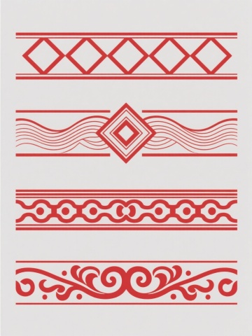 极简风格线条装饰图案设计,四个水平排列的线条分隔元素,每个元素由对称的几何或花卉图案构成。第一个线条两端为三角形箭头,中间有三个点状装饰;第二个线条两端为对称的卷曲图形,中间有圆形和三角形组合装饰;第三个线条为流畅的波浪曲线,中间有水滴状装饰;第四个线条两端为花朵图案,中间有两个点状装饰。所有元素均为纯黑色线条绘制,背景为纯白色,线条简洁流畅,图案对称平衡,整体呈现出简约、清晰、具有装饰性的视觉效果,适合作为页面分隔线或装饰边框使用。