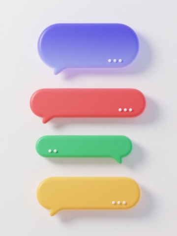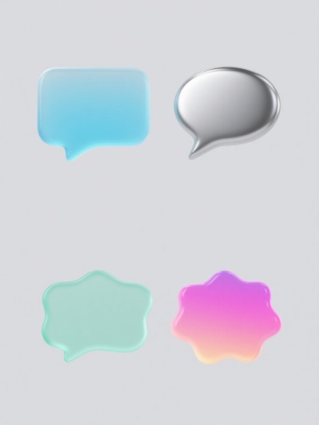 6个不同样式、不同配色的"new"标签,每个标签都采用类似原图的卡通风格对话气泡形状,保持白色字体,气泡颜色分别为红色、蓝色、绿色、黄色、紫色、橙色,均具有明显的渐变光影效果和立体感,白色背景,6个标签整齐排列成两行三列,间距均匀,整体视觉层级清晰,信息传达高效。