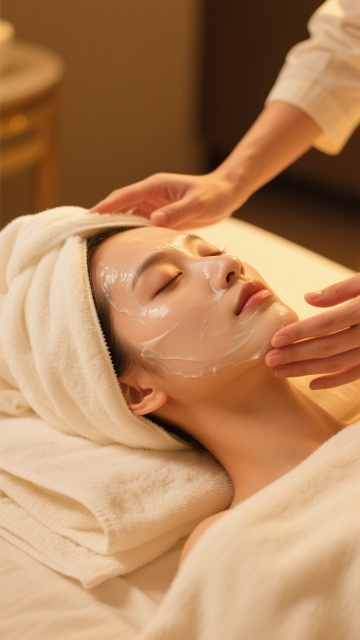 白色背景下,一位变换形象的年轻女性侧脸特写,她的头发梳成整洁的低发髻,肌肤呈现出细腻光滑的质感,面部有蓝色发光网格线条覆盖,网格线条由细小的光点连接而成,呈现出科技感与未来感,光线柔和地照亮面部轮廓,整体画面简洁、干净,具有高端美容科技的氛围,人物表情宁静,双眼微闭,颈部线条优美,皮肤白皙透亮,高光处理细腻自然,突出肌肤的光泽感和立体感。