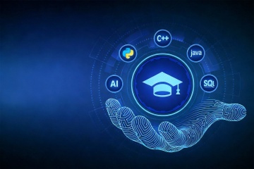 扁平化插画风格,以学习为主题,两个充满活力的学生坐在一本巨大的绿色翻开的书本上,男孩穿着蓝色背带裤和黄色衬衫,头戴蓝色发带,双手高举;女孩穿着粉色连衣裙和白色开衫,扎着双马尾,挥舞着右手,周围漂浮着红色铅笔、紫色三角尺、黄色星星、绿色笔记本和橙色毕业帽,整体色彩明快活泼,构图饱满,线条简洁流畅,充满青春学习的欢快氛围。