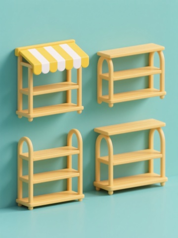 四个同风格商城系列素材集合,每个元素为不同的商城相关物品,均采用透明渐变橙色塑料材质,具有光滑表面和金属质感的小部件,立体感强,带有细微高光和阴影,规整排布在纯色背景上。第一个元素是橙色透明渐变塑料购物篮,带金属色把手和滚轮;第二个元素是橙色透明渐变塑料货架,有多层置物空间和金属支架;第三个元素是橙色透明渐变塑料收银台,带有抽屉和键盘区域;第四个元素是橙色透明渐变塑料商品展示柜,有玻璃门和分层隔板。所有元素保持一致的3D立体风格、光影效果和材质表现,整体布局整齐有序。