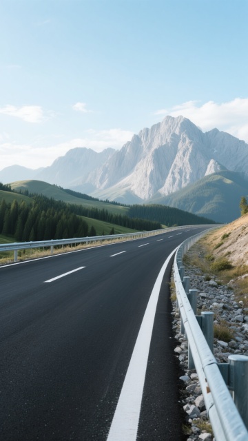 写实风格的运输车队场景,清晨薄雾笼罩的蜿蜒山路,三辆白色大型集装箱卡车首尾相接行驶在湿漉漉的柏油路面上,车头前灯和尾灯在雾气中形成朦胧光晕,远山在晨曦中若隐若现,天空呈现清冷的蓝紫色调并点缀着几缕金色霞光,道路两侧是覆盖着露珠的绿色植被,整体画面光影柔和细腻,营造出宁静而专业的运输氛围,车辆金属质感与湿润路面的反光细节清晰,构图采用三分法突出车队的延伸感和道路的纵深感。