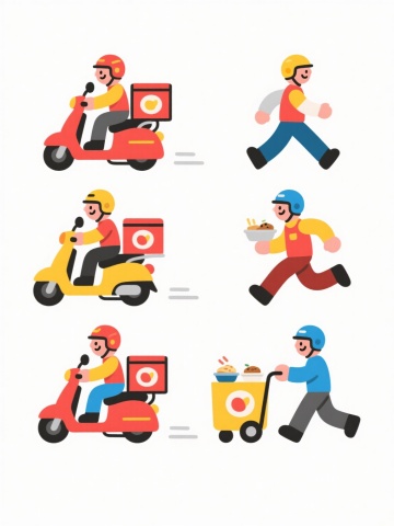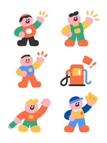 六个不同样式、不同造型、不同姿势、不同配色的加油主题简笔画人物元素,保持手绘风格,线条粗犷流畅,带有速度线和动感线条,表情夸张充满活力,白色背景,元素排列整齐,形成平衡的视觉布局,整体风格统一且充满积极向上的氛围