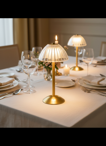 暗色调室内场景,长桌上摆放着点燃的白色蜡烛、多层橙色蛋糕、银质餐具、高脚杯和精致餐点,上方悬挂着大量金色、深绿色和黑色的气球,气球下方垂落着闪烁的串灯,整体呈现出温馨而略带神秘的氛围,烛光映照在桌面物品上形成温暖的光影,背景为深色墙面和模糊的窗户轮廓,营造出夜晚聚会的浪漫情调。
