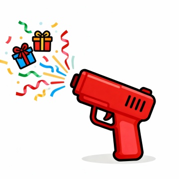 软3D风促销海报,卡通泡泡枪与礼物盒,波普艺术风格,塑料质感,节日氛围浓厚。