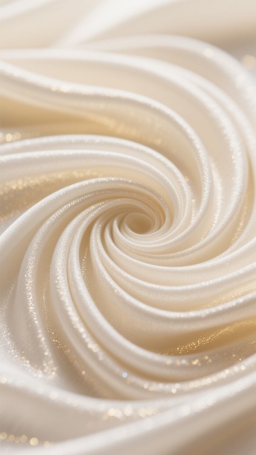一张高质感纯白色布料的特写照片,布料呈现出自然柔和的螺旋状褶皱,纹理细腻清晰可见,具有轻微的光泽感,整体画面干净简洁,光线明亮柔和,从上方偏右位置照射下来,在布料表面形成自然的光影过渡和微妙的阴影,营造出纯净、优雅、高级的氛围,布料材质看起来柔软顺滑且具有良好的垂坠感。