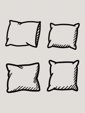 4个不同设计的抱枕以规整方式排布,简约现代风格,包含浅灰色条纹纹理抱枕、深蓝色编织纹理抱枕以及另外两种不同材质或图案的抱枕,均为方形,具有真实的布料质感和轻微褶皱,统一放置在纯白色纯色背景上,光线柔和均匀,无阴影,无任何文字、logo或水印,整体构图简洁平衡。