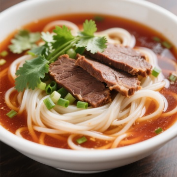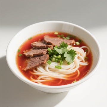 超写实美食摄影风格,一碗热气腾腾的中式面条,深棕色浓郁汤汁,面条被木筷挑起呈现自然垂坠感,碗中点缀大块炖煮至软烂的酱色肉块、翠绿香菜和葱花,碗边散落鲜红完整干辣椒,背景为古朴木质纹理与中式格栅窗的模糊剪影,整体暖色调(棕红、赭石、暖黄为主),侧上方柔和主光源形成明显高光与阴影对比,突出食物质感与立体感,大面积留白处理增强画面呼吸感与简约高级感,木质桌面纹理清晰,整体氛围温暖诱人,细节丰富,色彩和谐统一。