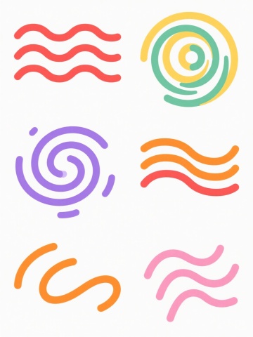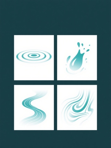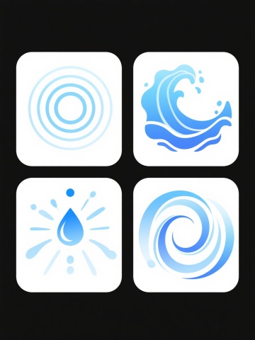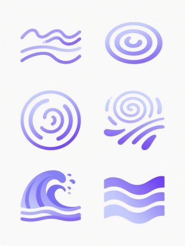 一套6个浪花元素设计,保持统一的卡通插画风格,使用纯色背景,每个浪花形态完全不同。1. 第一个浪花:明亮的蓝色渐变,带有白色泡沫细节,呈现出向上翻涌的动态造型,边缘圆润光滑,像卡通化的海浪,带有水滴飞溅效果。2. 第二个浪花:采用深蓝色和白色对比,设计成环形漩涡状,中心有一个小气泡,浪花边缘有尖锐的三角形海浪尖,整体造型紧凑有张力。3. 第三个浪花:浅蓝色调,呈现出柔和的波浪曲线,像一个微笑的弧线,顶部有蓬松的泡沫云,底部有细小的波纹,造型可爱温柔。4. 第四个浪花:深蓝色为主,带有白色条纹状泡沫,设计成多层堆叠的波浪,每层波浪大小不一,错落有致,有强烈的层次感。5. 第五个浪花:蓝白渐变,造型像一个向前推进的海浪,前端有一个突出的波峰,波峰上有一个小海豚剪影,增加趣味性,整体动感十足。6. 第六个浪花:采用蓝、白、浅蓝三色,设计成不规则的浪花形状,像多个小浪花汇聚在一起,有的向上,有的向下,有的向左,有的向右,呈现出活泼跳跃的姿态,充满活力。所有浪花都保持简洁的线条,鲜明的色彩对比,符合卡通插画的设计感,每个都有独特的形态和细节,适合作为图标或装饰元素使用。