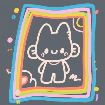 可爱感十足的拟人猫咪插画,采用蜡笔风描边与梦幻色系边框,卡通风格萌趣生动,整体呈现温暖治愈的节日氛围。