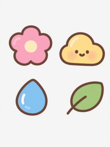 一系列6个造型各异的卡通风格装饰元素集合,每个元素均保持核心构成:一道彩虹、两朵云朵、若干气泡和心形图案,所有元素均采用半透明果冻质感,表面光滑且带有高亮反光和细腻的白色星光点缀,背景为纯色且各不相同,整体色彩方案完全变换(如第一幅为清新蓝绿色调、第二幅为温暖橙黄色调、第三幅为梦幻粉紫色调、第四幅为活力红橙色调、第五幅为宁静蓝紫色调、第六幅为柔和黄绿色调),所有元素规整地横向或纵向排布,形成协调统一的系列感,每个元素造型在保持核心识别度的前提下进行差异化设计(如彩虹弧度变化、云朵形状调整、气泡和心形数量及排列方式改变等),整体画面充满可爱、梦幻的氛围,具有简洁明了的视觉效果和高度的装饰性。