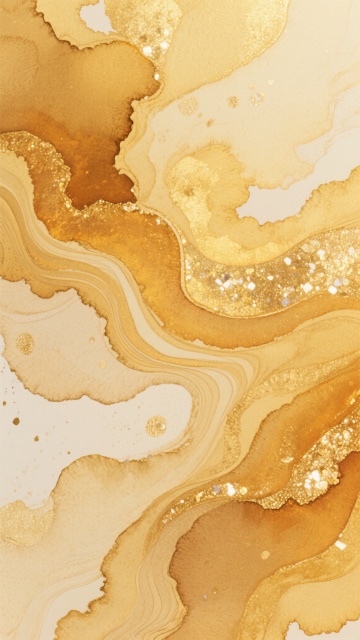 金色调抽象背景,具有丰富的油画质感,厚重的笔触纹理,暖黄色与橙金色的渐变融合,顶部有明亮的高光区域如同阳光照射,整体呈现出温暖、华丽而略带复古的氛围,画面充满流动感的抽象线条和斑驳的色块交织,具有自然随机的艺术肌理效果。