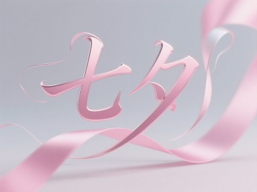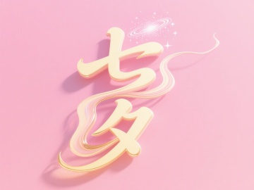 横向文字“七夕”线条流畅,飘逸手写艺术字,“七”跟“夕”拉扯连接,形成心形,自然,字体中某些笔画如可用花朵或者喜鹊或者牛郎织女剪影代替则可代替,整体要自然流畅一点,整体以粉色调为主。浓烈的浪漫七夕氛围感。