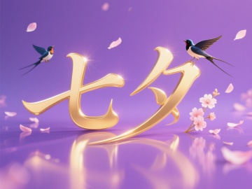 梦幻浪漫的七夕节,鎏金大字风设计,3D立体感与花瓣飞舞,营造唯美的节日氛围。