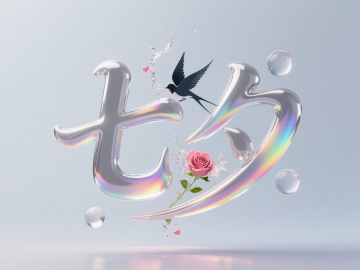 梦幻感3D风设计,软3D液态字母与飞鸟、玫瑰交织,色彩斑斓,浪漫温馨。