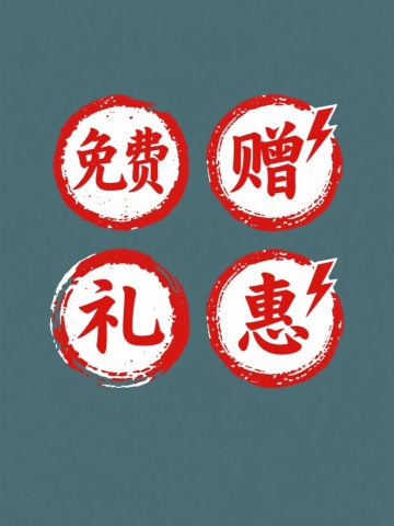纯色背景上,同风格、同类目的6个完全不同元素内容的系列素材集合规整排布,每个素材均采用红色圆形印章设计,印章内有白色英文环绕和立体凸起的白色中文文字,分别为“新品推荐”“热卖爆款”“限时促销”“特惠折扣”“买一送一”“新品上市”,整体保持数字艺术的平滑过渡质感和清晰的视觉层级,确保信息传达效率。