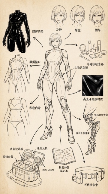 可爱卡通女孩,多角度展示,动漫风格设计,简洁温馨。