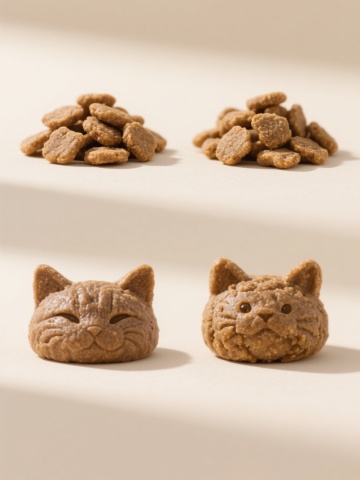 极简主义风格食品摄影,四个不同造型的饼干以规整网格状排布于纯色背景上,保持与原图一致的高清晰度写实质感,饼干表面呈现自然的烘焙色泽与纹理细节,光线柔和均匀营造出细腻的阴影层次,整体构图简约现代,无任何文字、logo及水印元素。