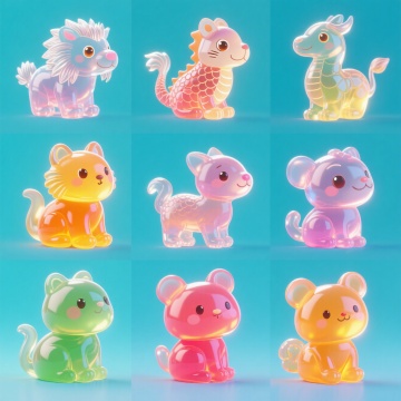 软3D风卡通动物,色彩鲜艳,塑料质感,可爱造型,适合儿童玩具设计。