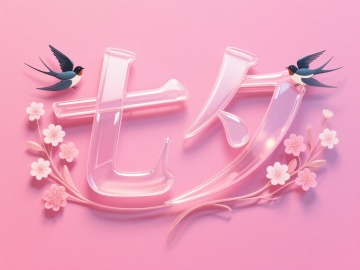 梦幻感十足的软3D风设计,液态文字“七夕”在樱花与云朵间流淌,浪漫节日氛围。