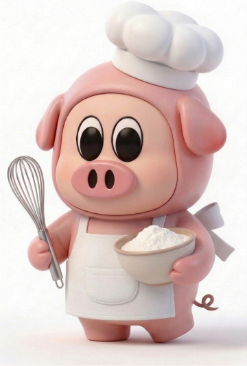 3D卡通风格,Q版人物,白色背景,一个戴着厨师帽、穿着白色厨师服和蓝色围裙、手持锅铲的小女孩,有着棕色双马尾、圆圆的脸蛋、大大的眼睛、微笑的嘴巴,脸颊泛着红晕,穿着蓝色鞋子和白色袜子,整体造型可爱、活泼、充满童趣,3D渲染,细节丰富,色彩明快,光影柔和,高光表现自然,构图居中,视觉焦点突出