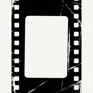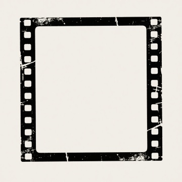 一个具有复古胶片风格的黑色边框框架,边框呈现出粗糙的刮痕和斑驳质感,左右两侧分布着整齐排列的胶片孔洞,整体设计简洁,黑白对比强烈,具有明显的手工绘制和印刷感,营造出怀旧的电影氛围。