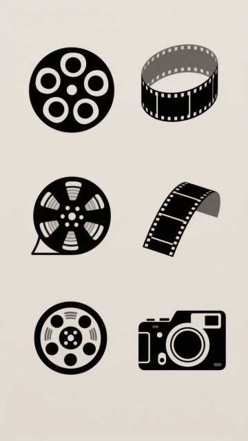 极简风格电影胶片边框插画,纯黑色线条勾勒,顶部和底部均匀分布圆形胶片孔,中间为纯白矩形区域,整体呈现简洁、几何化的平面设计感,线条粗细一致,边缘平滑,无任何多余装饰元素。