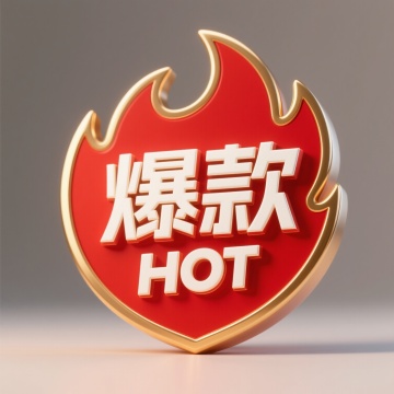 一组四个完全不同造型的爆款元素内容集合,规整排布在纯色背景上,每个元素均保持原3D质感的渐变风格、橙红色主色调与金色描边的色彩和谐度、高光与阴影细节丰富的光影运用、平滑过渡的数字艺术媒介特征,元素造型分别为:1. 火焰包裹的"HOT"文字与"爆款"汉字组合的不规则徽章;2. 五角星形状内包含"热门"文字的立体标签;3. 爆炸效果环绕"热销"字样的动态图标;4. 盾牌轮廓内有"推荐"字样的权威标识,所有元素视觉层级清晰,信息传达高效,符合促销宣传的设计感与目标受众审美。
