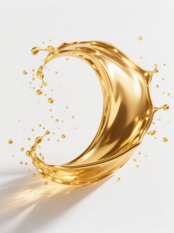 一张展现不同画面内容纹路的精华液背景图,画面主体为金色透明的精华液以动感的姿态飞溅,形成优雅的波浪状弧线,液体表面光滑细腻,带有丝绸般的光泽和流动的纹路,周围散布着大小不一、晶莹剔透的金色液滴,悬浮在纯净的浅灰色背景上。整体采用高质感的3D渲染效果,光线从上方柔和照射,在液体表面形成明亮的高光和自然的阴影,突出精华液的浓稠质地与奢华感,色调以温暖的金色为主,搭配简洁的背景,营造出高端、纯净、富有活力的氛围,视觉焦点集中在形态优美的精华液飞溅瞬间,液体的动态纹路清晰可见,展现出产品的流动性与滋养特性。