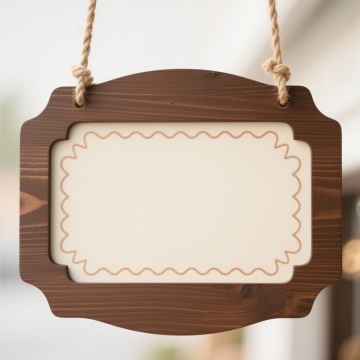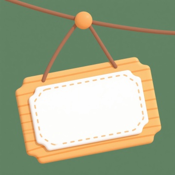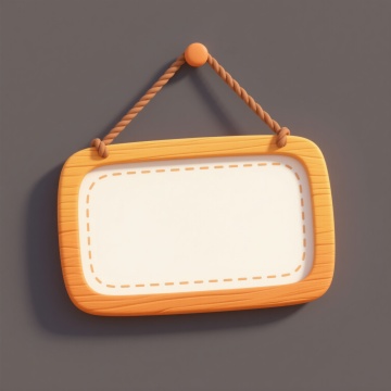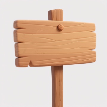 一个带有弧形顶部和装饰性边角的木质指示牌,由深浅不一的橙黄色木板拼接而成,表面有自然的木纹肌理和轻微的磨损效果,底部连接着一根圆柱形木杆,顶部有一个小巧的木质装饰帽,整体呈现出简约而温馨的卡通插画风格,背景为纯白色。