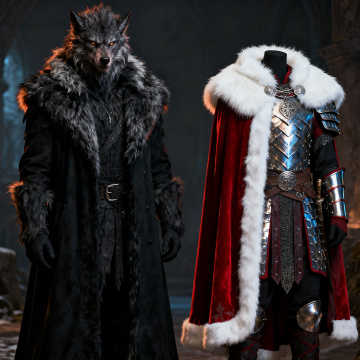 3D风拟人狼战士,毛发旺盛,手持巨斧,超现实主义风格,森林中散发神秘感。
