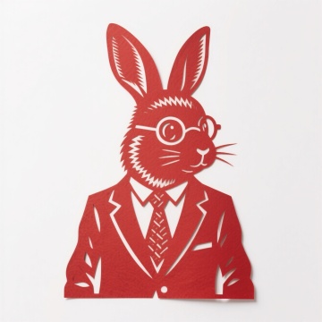 剪纸风中式设计,拟人兔子划船载福,喜庆祥云环绕,春节氛围浓厚。