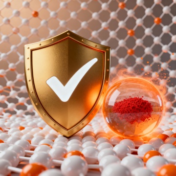 未来感3D玻璃盾牌,霓虹橙光勾勒科技线条,金属质感基座,光影交错展现安全防护主题。