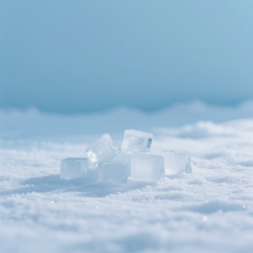 冰块在雪中,简约主义风格,清新透亮,营造冬日清爽感。