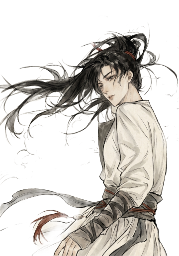 华丽古风水墨人物插画 水墨浅色粗湿笔勾线+回折处干脆利落 水墨湿笔铺色,水彩看涂晕染,弥散渐变,色彩饱满有层次,水迹点染,金色银色点缀 宣纸质感,粗颗粒质感 时间凝固瞬间,动感构图,大写意留白 人物特写,从头顶俯瞰,暗色调,主题枯萎,主色深绿+幽蓝+暗红+黎色+浅云背景,墨色长卷发男子 丝绸+丝绒 深蓝色交领汉服 红色内衣 黑色细躞蹀腰带 绸缎般的浓密长发+高光 繁复褶皱+华丽饰品和纹理 意境
