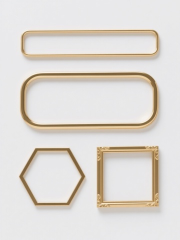 一个具有现代简约风格的画框,整体呈长方形,边框为双层结构,外层边框为哑光黑色金属材质,内层边框为金色金属细边,边框线条笔直、棱角分明,表面光滑无纹理,画框内部为纯白色空白区域,整体悬浮于纯白色背景之上,光线均匀柔和,无明显阴影,视觉层级清晰,信息传达简洁高效。