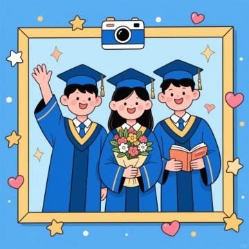 软3d风格插画,画面中有三个穿着毕业服装的人,其中一人盘腿坐着,双手捧着一束花和一个卷轴,另外两人站立着举起双手,三个人的毕业帽都向上飞起,周围有彩色的纸屑飘落,整体色调明快,充满欢快明亮的氛围,人物表情开心,动作活泼,构图饱满,细节丰富,具有很强的视觉吸引力和感染力。