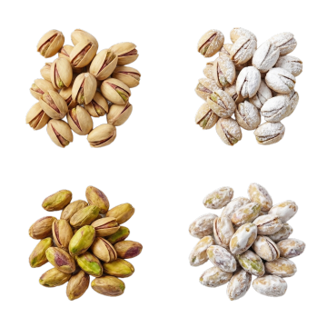 纯白背景上,六个不同形态的坚果类食品以规整网格排布组成的系列素材集合。每个坚果均保持超写实摄影风格,展现细腻的外壳纹理、自然的浅棕色调与精准的光影效果,包括完整带壳花生、剥开的半颗花生、饱满的花生仁、带纹路的核桃、开口的榛子及椭圆形的巴旦木,整体构图平衡对称,单元素材独立清晰且风格统一。