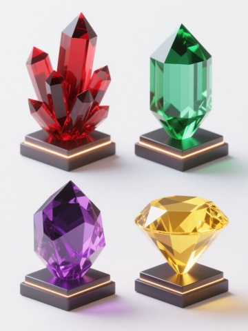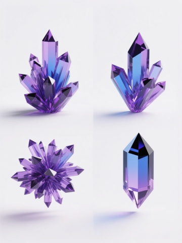 一组6个完全不同冰雪元素内容的系列素材集合,均采用晶莹剔透的3D水晶玻璃质感,以淡蓝色和青色为主色调,带有锋利的棱角、不规则几何切面、冰裂纹理和悬挂的冰凌,局部有微妙的光线折射和高光,背景为纯白色,元素大小统一且在白色背景上呈规整网格排布,每个冰雪元素分别为:冰冠皇冠、冰雕雪花、冰晶星星、冰棱盾牌、冰锥山峰、冰洞拱门,整体保持冷冽通透的冰雪氛围和精致的数字艺术风格。
