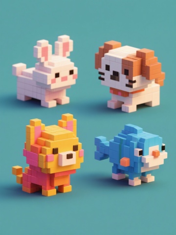 24×24像素风格的动物集合,纯色背景,六个完全不同的动物规整排布成2行3列,每个动物都有圆润的造型和可爱的面部表情,包括坐着的橘色猫咪、站立的棕色柯基犬、蓬松尾巴的红色狐狸、长耳朵的白色兔子、有条纹的黄色老虎和长鼻子的灰色大象,整体色彩明快鲜艳,每个动物都有独特的配色方案,像素块排列整齐,边缘清晰,呈现出简洁而治愈的视觉效果。