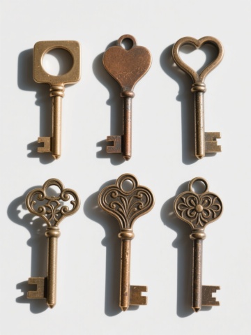 六个排列整齐的勋章,每个勋章样式各异,材质分别呈现出金、银、铜等金属质感,风格融合了复古与现代设计元素,整体采用圆形轮廓,边缘装饰有不同的花纹图案,中心区域简洁留白,具有光滑的金属光泽和细腻的光影效果,背景为纯白色。