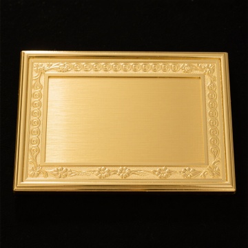 白色背景上,整齐排列六个不同样式、不同风格、不同材质的门牌。第一个门牌为金色金属材质,具有古典对称的卷草纹边框,边缘有红褐色描边,表面光滑有金属光泽,呈现出3D立体效果,光影过渡自然,高光和阴影细节丰富,整体风格华丽典雅。第二个门牌为木质材质,呈深棕色,表面有清晰的木纹肌理,边框为简约的直角线条,带有复古做旧处理,边角有轻微磨损感,风格质朴自然。第三个门牌是现代简约风格的亚克力材质,透明蓝色,无边框设计,表面光滑通透,有轻微的反光效果,显得时尚清新。第四个门牌为石材材质,浅灰色,边框为不规则的自然石纹形状,表面粗糙有颗粒感,呈现出原始自然的风格。第五个门牌是布艺材质,米白色布料,边缘有精致的蕾丝花边装饰,整体柔软轻盈,风格温馨浪漫。第六个门牌为黑色金属材质,工业风设计,边框为粗犷的直线条,表面有磨砂质感,带有铆钉装饰,风格冷峻硬朗。所有门牌大小相近,以两行三列的整齐布局排列,保持统一的视觉平衡和间距,整体构图简洁有序,信息传达清晰,具有良好的设计感和视觉层次。