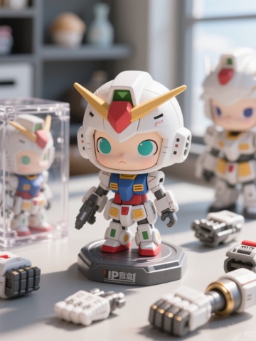 前景有几个未组装的高达手部零部件,小红书博主风格的桌面高达展示场景,光影明显,画面明亮,